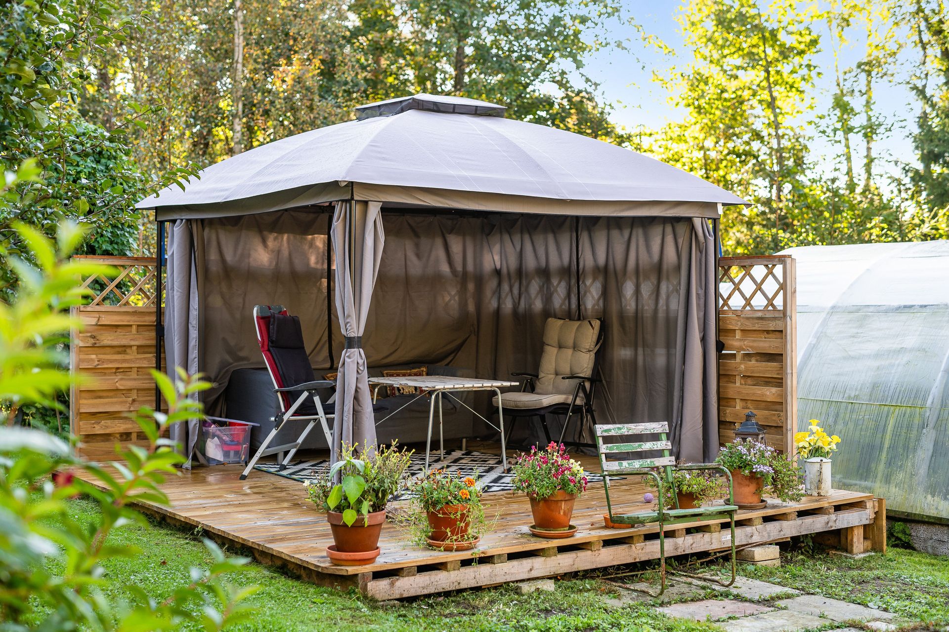 Gäststuga med veranda om ca 10 m2 byggd -97/98 Träpanel på väggar/tak. Laminatgolv. Garderober ingår. Stugan är isolerad och el finns utdragen. 3-fas el finns. Vedbod/Kallförråd. Växthus.
